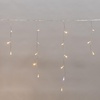 Светодиодная гирлянда Айсикл (Бахрома) представляет собой горизонтальный провод 5 м, на котором располагаются вертикальные нити разной длины от 30 до 60 см. Благодаря своей форме гирлянда оптимально подходит для оформления гардин, ниш, открытых проемов между комнатами, а также крыш, навесов, перил и других элементов зданий и ограждений. Степень защиты IP44 позволяет использовать гирлянду как на открытом воздухе под навесом, так и внутри помещений. На каждой нити располагаются светодиоды, создающие эффект сверкающих сосулек. Цвет свечения – теплый белый. Прозрачный провод изделия делает светящиеся линии более выразительными и образует гармоничную яркую композицию. Особенностью гирлянды является эффект мерцания, который добавляет динамики и создает магическую атмосферу.