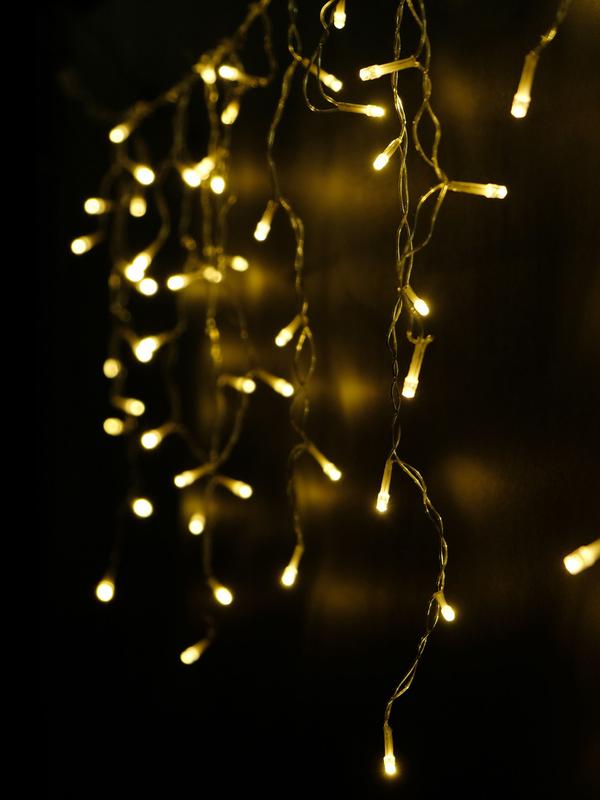 Электрогирлянда состоит из 80 LED-ламп. 20 нитей различной длины, Гирлянда соединяемая, имеет возможность подключения дополнительных модулей, т.е. от одной розетки можно подключить до 10 таких гирлянд. Назначение - для использования на улице Тип ламп - светодиоды (цвет теплый белый); Кол-во ламп - 80; Длина свисающих нитей (по вертикали) - 16/48/40/24 см; Провод - прозрачный, сетевой шнур: 150см; Материал изоляции - ПВХ; Мощность - 5 Вт; Дополнительно - встроенный контроллер с 8 режимами мигания.
