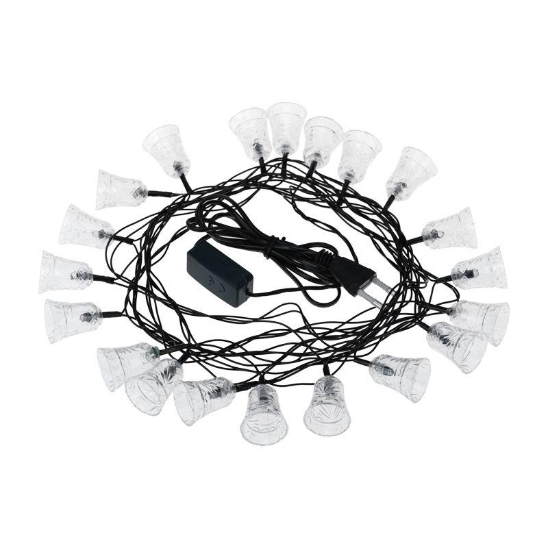 Светодиодная гирлянда «Колокольчики» длиной 2,8 метра станет прекрасным стилистическим украшением интерьера: темный кабель с оболочкой из темно-зеленого ПВХ практически незаметен в декоре аналогичного тона — диоды создают эффект объемного свечения. Гирлянда подходит для создания акцентной подсветки в интерьере или используется в качестве самостоятельного декора отдельных предметов обстановки. 20 светодиодов, выполненных в виде колокольчиков, светятся разноцветными огнями, создавая атмосферу праздника и волшебства. Гирлянда имеет степень защиты IP20 и предназначена для использования в интерьере и сухих помещениях с умеренной влажностью. Гирлянда питается от электросети с напряжением до 230 Вольт.