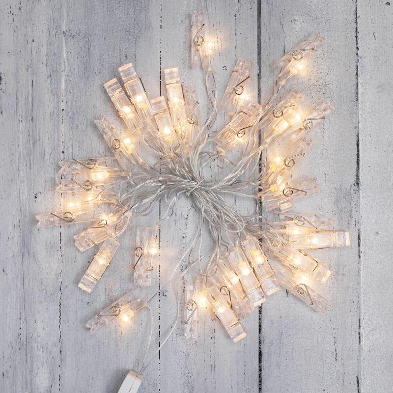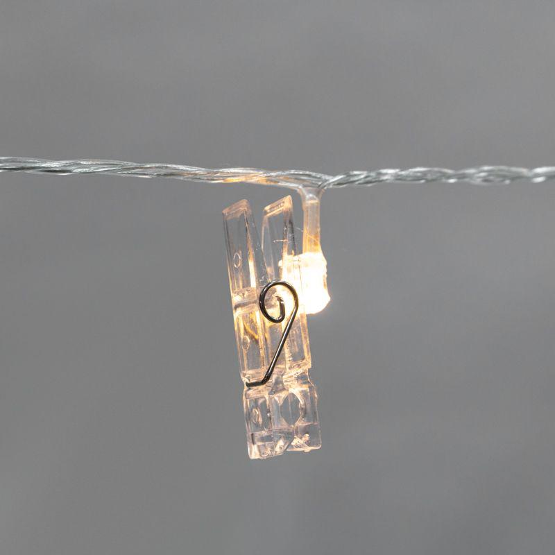 Светодиодная гирлянда «Прищепки» — эффектный декор интерьера, который поможет разнообразить обстановку и создаст атмосферу уюта. На проводе длиной 5,2 метра располагаются 30 диодов, излучающих белый свет теплого оттенка. Каждый элемент имеет пластиковую прищепку, к которой можно прикрепить фото, картинку или другие легкие элементы декора. Гирлянда IP20 подходит для оформления новогодних елей, оконного текстиля, мебели и предполагает использование в помещениях с естественной влажностью воздуха. Изделие работает от сети 230 В, для подключения в розетку предусмотрен питающий шнур длиной 3 метра.