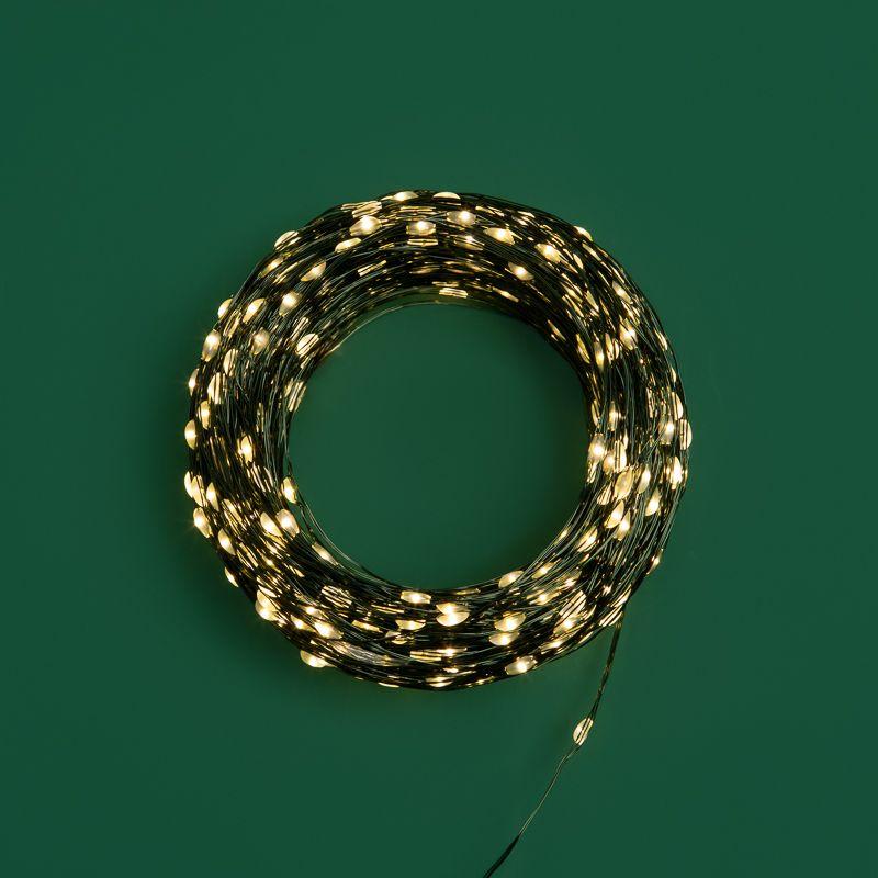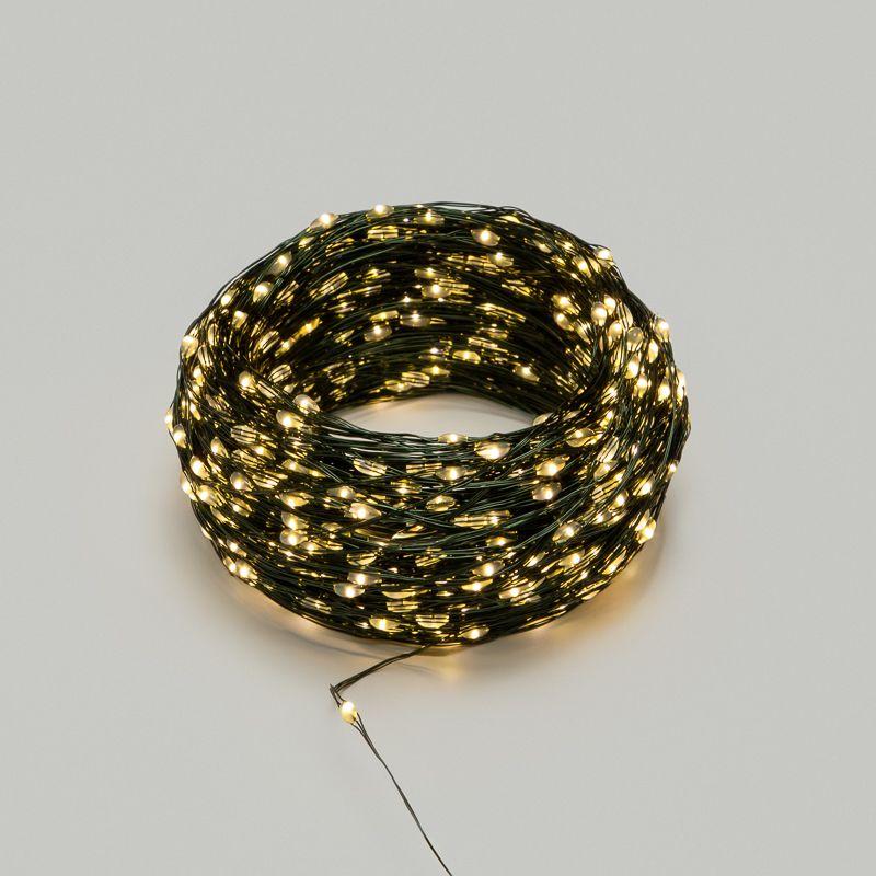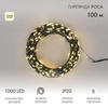 Гирлянда Роса длиной 100 метров представляет собой тонкий провод зеленого цвета, на котором горят и мерцают маленькие светодиоды, напоминающие капли росы. Благодаря своей универсальности гирлянда применяется для украшения любых предметом интерьера и используется для создания романтических образов на фотосессиях, свадьбах, днях рождениях и других праздниках. Отлично подходит для украшения новогодней елки. Роса излучает теплое белое свечение, которое создает уютную и приятную атмосферу в любом помещении. При работе гирлянда не нагревается, что делает ее абсолютно безопасной. Гирлянда имеет 8 режимов свечения. Оснащена трансформатором и контроллером, который позволяет выбирать необходимый режим работы.