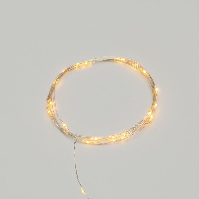 Гирлянда «Роса» длиной 2 метра питается от двух элементов типа CR2032, которые находятся в батарейном блоке на конце провода. Независимость от розетки открывает большие возможности в создании светового декора, а гибкий кабель с эффектом памяти позволяет формировать самые сложные фигуры.Благодаря абсолютной безопасности способа питания, изделие прекрасно подходит для оформления детских комнат. 20 диодов светятся яркими желтыми огнями и работают до 48 часов от одного комплекта батареек.