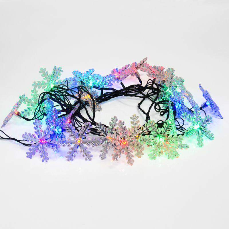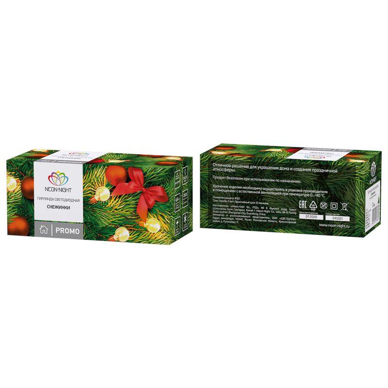 Светодиодная гирлянда «Снежинки» длиной 4,4 метра — идеальное решение для украшения новогодней ели. Прозрачные реалистичные насадки-снежинки ярко подсвечиваются разными цветами. 30 светодиодов расположены по всей длине шнура, скрытого в изоляции из зеленого ПВХ. Гирлянда имеет степень защиты IP20 и предназначена для использования в интерьере и сухих помещениях с умеренной влажностью. Гирлянда питается от электросети с напряжением до 230 Вольт.