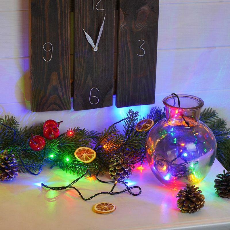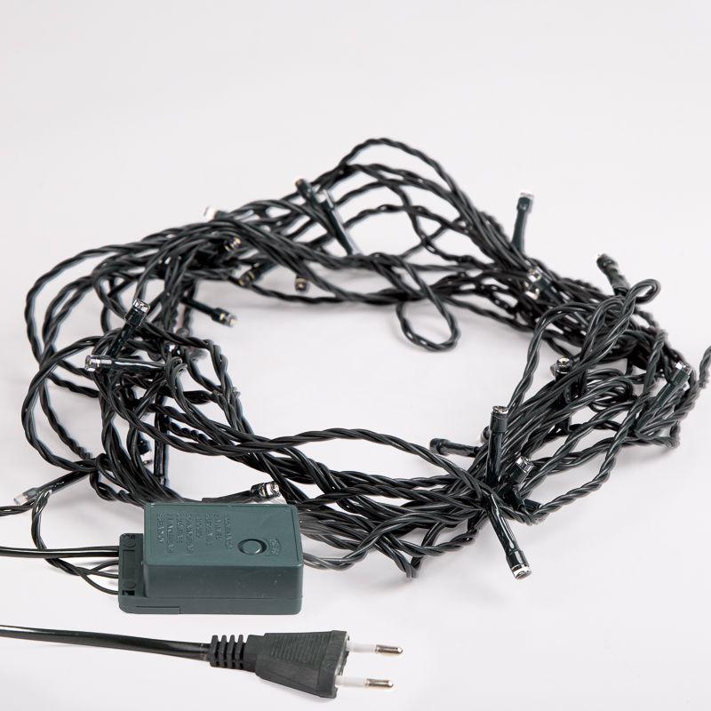 Гирлянда «Твинкл» длиной 4 метра представляет собой провод, изолированный темно-зеленым ПВХ, на котором расположены 25 диодов. Гирлянда цвета «мультиколор» станет прекрасным украшением новогодней ели, а также эффектно подчеркнет другие предметы обстановки: портьеры, вазы, торшеры, лестничные перила, элементы мебели. Светодиоды переливаются яркими разноцветными огнями, создавая ощущение сказки и преображая все вокруг. Гирлянда подключается к розетке при помощи 3-метрового шнура с вилкой. Контроллер с 8 режимами позволяет менять светодинамику в соответствии с настроением.