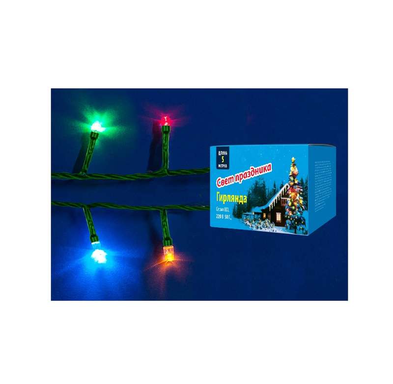 Гирлянда UDL-S0500-050/DGA MULTI IP20 MINI с контроллером 5м 50 миниламп накаливания свет разноцветный провод зел. Uniel UL-00002389