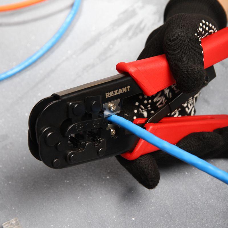 Кримпер HT-568R предназначен для обжима компьютерных и телефонных разъемов RJ-45, RJ-12, RJ-11. Корпус кримпера изготовлен из высокопрочной хром-ванадиевой стали с воронением, благодаря чему устойчив к механическим воздействиям и имеет продолжительный срок службы. Обладает дополнительными функциями обрезки проводов и снятия изоляции с плоских и круглых кабелей. Режущие сегменты закругленной формы надежно обхватывают кабель и обрезают его без деформаций и скосов, а для большего удобства предусмотрена функция быстрой разблокировки лезвий после обрезки. Оснащен возвратным механизмом, который обеспечивает обратный ход рукояток и упрощает процесс работы с инструментом. Храповой механизм производит полный цикл качественной опрессовки. Однокомпонентные защитные рукоятки выполнены из плотного нескользящего синтетического материала, который делает работу с инструментом легкой и приятной.