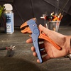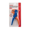 Стриппер HT-150B предназначен для зачистки внешней силиконовой или ПВХ-изоляции многожильного кабеля сечением 0,3–6 мм2 и обрезки кабеля. Корпус стриппера изготовлен из высокопрочной хром-ванадиевой стали и ударопрочного пластика. Конструкция инструмента, выполненная в соответствии со специальной технологией, исключает повреждение жил провода в процессе снятия изоляции. Регулятор степени сжатия и глубины разреза провода позволяет адаптировать инструмент под различные типы и размеры изоляции и не повредить сам провод при снятии изоляции. Стриппер оснащен возвратным механизмом, который обеспечивает обратный ход рукояток и упрощает процесс работы с инструментом, и режущей кромкой для равномерной обрезки проводников. Двухкомпонентные противоскользящие рукоятки обеспечат правильное расположение инструмента в руке и сделают работу легкой и приятной.