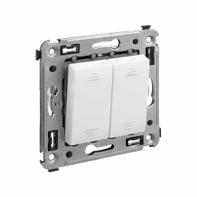 Инвертор двухклавишный. Назначение: для монтажа в подрозеточные коробки глубиной не менее 45 мм (код 59301). Служит для включения/выключения освещения с трех и более мест. Характеристики: 2 модуля, диаметр отверстий для ввода кабелей – 3 мм (по 2 отверстия на одну клемму); винтовые зажимы; фиксация в подрозеточную коробку при помощи саморезов; шаблон для зачистки кабеля – 11 мм; номинальный ток – 16 A; номинальное напряжение – 230 В. Цвет: "Белое облако". Производитель оставляет за собой право вносить во внешний вид изделия изменения, которые не влияют на его функционал, безопасность и надежность.