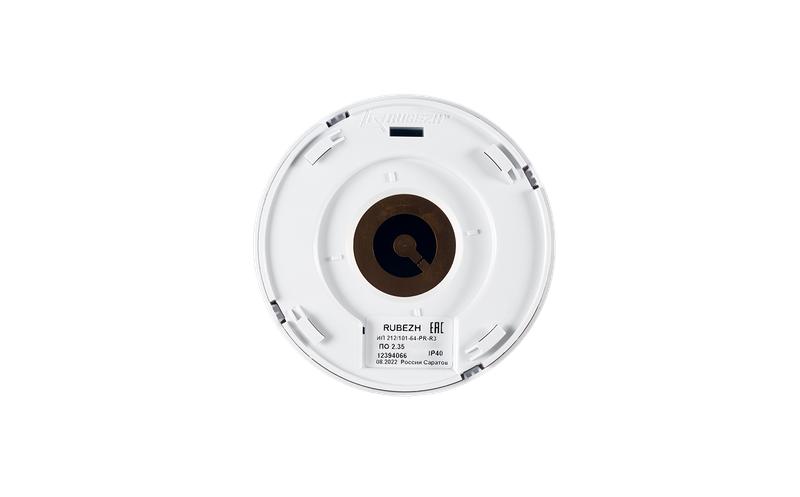 Данное исполнение извещателя поставляется без базового основания. Для подключения извещателя ИП 212/101-64-PR-R3 без б/о в АЛС приемно-контрольного прибора необходимо использование одного из базовых оснований: W1.02 – для монтажа на несущие конструкции; W1.03 – для монтажа на несущие конструкции (с контактом подключения экрана кабеля АЛС); W2.02 – для монтажа на подвесной потолок; W2.03 – для монтажа на подвесной потолок (с контактом подключения экрана кабеля АЛС); ИЗ-1Б-R3 L1.42 – с встроенным изолятором АЛС, для монтажа на несущие конструкции. Извещатель определяет возгорание по: концентрации дыма; максимальной температуре; скорости нарастания температуры. Извещатель выполняет следующие функции: обрабатывает по специальным алгоритмам результаты измерений и передает сигналы «Пожар» в приемно-контрольный прибор; формирует и передает в приемно-контрольный прибор сигнал «Неисправность»; имеет индикацию режима работы извещателя; имеет автоматическую компенсацию запыленности дымовой камеры для исключения ложных срабатываний; тестируется работоспособность с помощью кнопки или специального оптического тестера ОТ-1. Питание и информационный обмен извещателя осуществляются по двухпроводной АЛС. Разъемное соединение датчика с базовым основанием обеспечивает удобство установки, монтажа и обслуживания извещателя. Круговые контакты подключения к базовому основанию позволяют легко устанавливать извещатель, не ориентируя его относительно основания. Поставка извещателя без базового основания позволяет использовать данный извещатель с нужными опциями, которые обеспечиваются применением соответствующего базового основания - для установки на основные несущие конструкции, для установки на подвесной потолок, для применения экранированных кабелей АЛС (с 3 контактом). При необходимости защиты адресной линии связи от единичной неисправности без использования отдельных устройств, существует вариант базового основания со встроенным изолятором – ИЗ-1Б-R3 L1.42. Применение извещателя с базовым основанием ИЗ-1Б-R3 L1.42 позволяет сохранять работоспособным извещатель независимо от того, какой сегмент АЛС изолирует ИЗ-1Б-R3. Т.е. при возникновении КЗ во входном сегменте АЛС изолятор отключит этот сегмент и обеспечит связь извещателя от выходного сегмента АЛС и наоборот. Извещатель ИП 212/101-64-PR-R3 совместно с базовыми основаниями W1.ХХ или W2.ХХ занимает 1 адрес в АЛС прибора Рубеж. Извещатель ИП 212/101-64-PR-R3 совместно с базовым основанием ИЗ-1Б-R3 L1.42 – занимает 2 адреса (1 адрес ИП 212/101-64-PR-R3 + 1 адрес ИЗ-1Б-R3 L1.42).