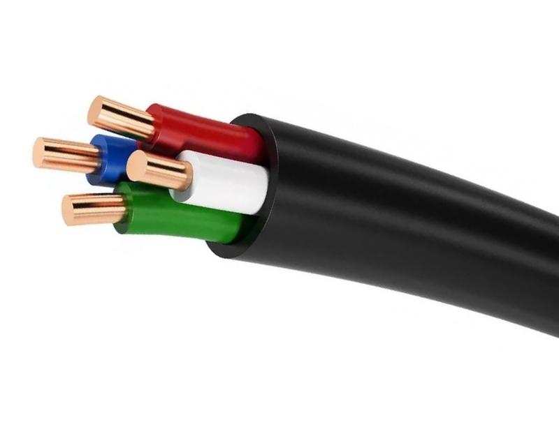 кабель силовой с 4 медными однопроволочными жилами круглой формы сечением 2,5 миллиметра квадратных, с изоляцией и оболочкой из поливинилхлоридного пластиката пониженной пожарной опасности с низкой токсичностью продуктов горения на напряжение 0,66 кВ.