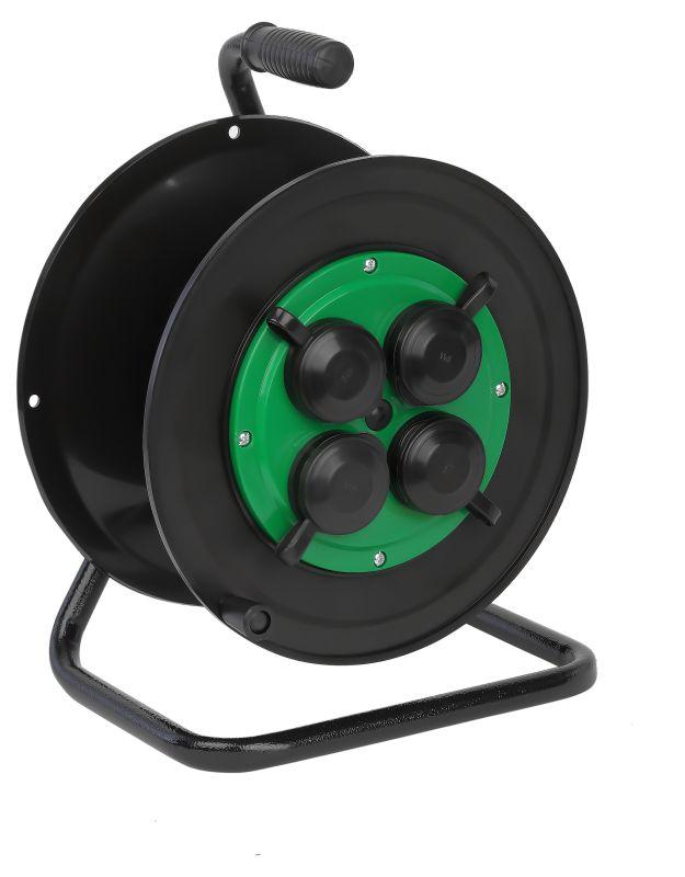 Катушка пластиковая 4 розетки с заземлением и защитным крышками. IP44