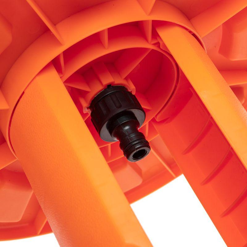 Катушка представляет собой садовый аксессуар, предназначенный для хранения и транспортировки поливочных шлангов до 30 метров. Устройство оснащено съемной рукояткой, благодаря которой шланг быстро и удобно наматывается на катушку. Конструкция позволяет защитить шланг от изломов и перегибов. Катушка изготовлена из качественного и прочного полипропилена, устойчивого к воздействию внешних факторов. Используемые материалы: полипропилен и металлическая труба.