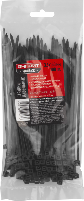 Хомут 90 313 OCT-036-150-100-BL (уп.100шт) ОНЛАЙТ 90313