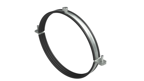Хомут для воздуховодов с изоляцией и гайкой М8 BHV используется для монтажа воздуховодов круглого сечения. Легкая регулировка хомута по внешнему диаметру трубы за счет наличия двух винтов. Снижает уровень шума до 15 дБ в соответствии с DIN 4109. Применим для труб диаметром 800 мм.