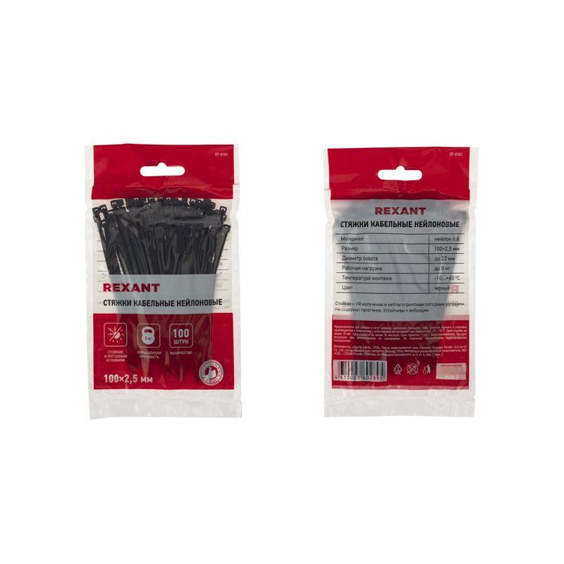 Хомут кабельный 2.5х100 нейл. черн. (уп.100шт) Rexant 07-0101