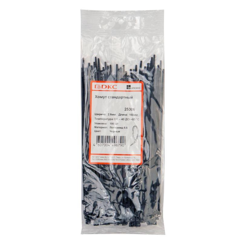 Хомуты (или, иначе, стяжки) – это популярный крепежный элемент, применяющийся при монтажных или строительных работах. Хомуты ДКС прочны, устойчивы к коррозии и воздействию агрессивных сред, что позволяет использовать их не только внутри помещений, но и на улице. С помощью гибких хомутов можно создавать как жесткие, так и подвижные соединения. Ребристые внутренняя и внешняя стороны обеспечивают надежную фиксацию и предотвращает соскальзывание хомута. Изделие имеет длину 160 мм, ширину 2,6 мм, устойчивость к растяжению 80 H. Не рекомендуется использовать стяжки в зонах, где они будут подвергаться воздействию прямых солнечных лучей. Температура монтажа составляет от -30 °С до +60 °С, температура эксплуатации – от -45 °С до +85 °С. Материал – полиамид. Цвет – черный.