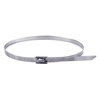 Кабельные хомуты из нержавеющей стали предназначены для монтажа трасс в условиях широкого диапазона температур, а также в условиях экстремально больших перепадов температур, химически агрессивных сред и больших нагрузок на разрыв. Материал полосы и замка – нержавеющая сталь AISI 304. Сталь AISI 304 имеет высокие показатели устойчивости коррозии в агрессивных средах, высокое сопротивление окислению и отличные низкотемпературные свойства. Температура эксплуатации от -80 до +538 °С. Предельная нагрузка – от 91 до 235 (ширина 12 мм) кг на замкнутое кольцо. Кромки ленты обработаны таким образом, чтобы не травмировать при монтаже. Замок - одиночный. Размеры: ширина - 4.6 мм, длина - 240 мм.