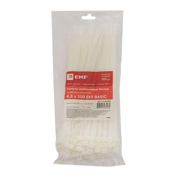 Хомут кабельный 4.8х200 нейл. бел. (уп.100шт) EKF plc-c-4.8x200