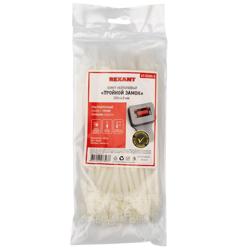 Нейлоновая хомут-стяжка Профессиональная с тройным замком – это высококачественное крепежное изделие, предназначенное для фиксации проводов, кабелей и труб в нужном положении, а также организации кабельных систем. Представляет собой белую нейлоновую полоску с высоким уровнем гибкости размером 200x4,8 мм. Стяжка изготовлена из нейлона-6,6, износостойкого и прочного материала. Данный вид хомутов на 30% крепче своих аналогов, так как оснащен двусторонним полотном с зубчиками и уникальным замком с тремя точками контакта. Изделия упакованы в герметичные пакеты многоразового использования с замком Zip-Lock. Этот тип упаковки обеспечивает удобное хранение и защиту от пыли, а также предотвращает потерю влаги. Стяжки упакованы в наборы по 100 штук. Установка хомутов может выполняться вручную или с помощью специального монтажного пистолета (арт. 12-4524, 12-4521 и 12-4541).