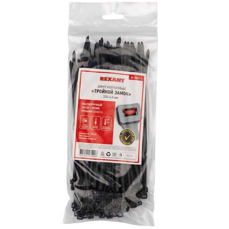 Нейлоновая хомут-стяжка Профессиональная с тройным замком – это высококачественное крепежное изделие, предназначенное для фиксации проводов, кабелей и труб в нужном положении, а также организации кабельных систем. Представляет собой черную нейлоновую полоску с высоким уровнем гибкости размером 200x4,8 мм. Стяжка изготовлена из нейлона-6,6, износостойкого и прочного материала. Данный вид хомутов на 30% крепче своих аналогов, так как оснащен двусторонним полотном с зубчиками и уникальным замком с тремя точками контакта. Изделия упакованы в герметичные пакеты многоразового использования с замком Zip-Lock. Этот тип упаковки обеспечивает удобное хранение и защиту от пыли, а также предотвращает потерю влаги. Стяжки упакованы в наборы по 100 штук. Установка хомутов может выполняться вручную или с помощью специального монтажного пистолета (арт. 12-4524, 12-4521 и 12-4541).