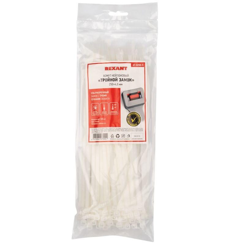 Нейлоновая хомут-стяжка Профессиональная с тройным замком – это высококачественное крепежное изделие, предназначенное для фиксации проводов, кабелей и труб в нужном положении, а также организации кабельных систем. Представляет собой белую нейлоновую полоску с высоким уровнем гибкости размером 250x4,8 мм. Стяжка изготовлена из нейлона-6,6, износостойкого и прочного материала. Данный вид хомутов на 30% крепче своих аналогов, так как оснащен двусторонним полотном с зубчиками и уникальным замком с тремя точками контакта. Изделия упакованы в герметичные пакеты многоразового использования с замком Zip-Lock. Этот тип упаковки обеспечивает удобное хранение и защиту от пыли, а также предотвращает потерю влаги. Стяжки упакованы в наборы по 100 штук. Установка хомутов может выполняться вручную или с помощью специального монтажного пистолета (арт. 12-4524, 12-4521 и 12-4541).