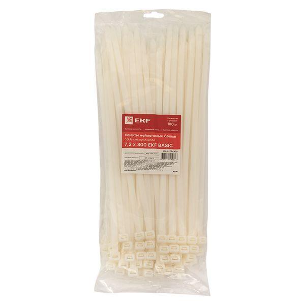 Хомут кабельный 7.2х300 нейл. бел. (уп.100шт) EKF plc-c-7.2x300