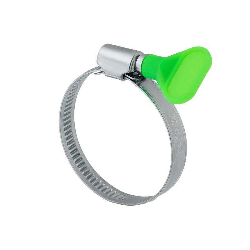 Хомут червячный с ключом — это соединительный элемент, применяемый для крепления и герметизации соединения шлангов, патрубков и других жёстких и гибких трубопроводов, ключ на данном хомуте позволяет обойтись без вспомогательного инструмента. Такой хомут несложно затянуть или раскрутить вручную, поэтому в быту этот крепеж находит применение обычно там, где его требуется часто снимать и ставить вновь. Область применения: предназначен для обжатия различных соединений в гидравлических и пневматических системах и должен обеспечивать герметичность соединений в условиях умеренного и тропического климата.