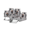 Клемма двухуровневая с Push-in зажимом предназначена для соединения четырех проводников, а за счет кнопки- толкателя обеспечивается защита от ошибок при монтаже и случайного прикосновения. Монтаж осуществляется на DIN-рейку OMEGA. Температура эксплуатации от -40 до +105оС. Корпус выполнен из ПА 6.6 с классом горючести V0 UL-94. Серый цвет, 4 точки подключения, 4 мм2. Вставные перемычки. Габариты (В?Ш?Г) 47,6?83,7?6,2 мм.