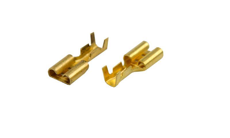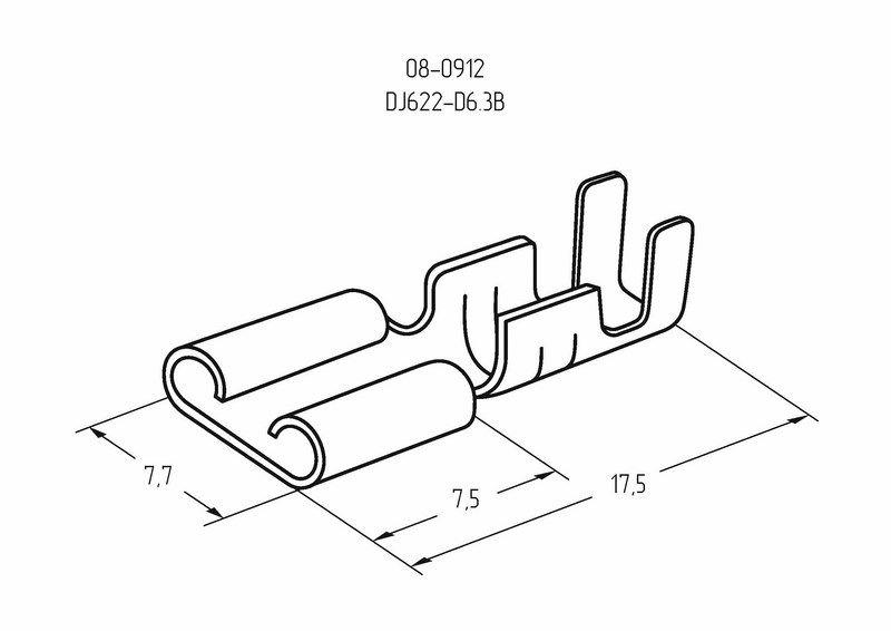 Клемма плоская (КП гнездо - 7.7 мм) 1-1.5 мм2 (DJ622-D6.3B) REXANT предназначена для создания качественного подключения электрооборудования или соединения проводов между собой, которое при необходимости возможно разъединить без лишних усилий. Такая клемма используется для оконцовывания многожильных медных проводов при монтаже мобильных электрических контактных соединений на подвижном составе (автомобиле-, вагоно-, самолето- и судостроении). Клемма плоская неизолированная (гнездо) REXANT изготовлена из латуни. Обжатие производится специальными пресс-клещами (к примеру, ht-202 арт.12-3031 и 12-3032; ht-230 арт.12-3101 и 12-3001; ht-301 арт.12-3020) по жиле и по изоляции, что обеспечит максимальную прочность соединения с проводом. Каждая клемма имеет фиксатор для более прочного механического соединения с штекерным разъемом. Основные характеристики: Температурный диапазон эксплуатации: -55...+135 ? Сечение применяемых проводов в диапазоне: 0.75-1.5 мм2 Рабочая ширина штекера: B = 7.7 мм Применение плоских клемм дает возможность существенно ускорять электромонтажные работы, при этом появляется возможность неоднократного отсоединения и присоединения проводов.