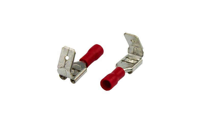 Клемма плоская изолированная (КПИ гнездо + штекер - 7.4 мм + 6.3 мм) 0.5-1.5 мм2 REXANT предназначена для создания качественного подключения электрооборудования или соединения проводов между собой, которое при необходимости возможно разъединить без лишних усилий. Такая клемма используется для оконцовывания многожильных медных проводов при монтаже мобильных электрических контактных соединений на подвижном составе (автомобиле-, вагоно-, самолето- и судостроении). Изолированная плоская клемма REXANT состоит из двух компонентов: металлического коннектора (гнездо+штекер) и защитного изолятора. Металлический коннектор изготовлен из латуни, с поверхностным электролитическим лужением, а изолятор клеммы из поливинилхлорида (ПВХ), который надежно защищает место обжима кабеля. Обжатие производится специальными пресс-клещами (ht-301 H арт.12-3014, 12-3014; ht-301 N арт.12-3116; ht-301 W арт.12-3021, 12-3021-4) поверх защитного изолятора. Каждая клемма имеет фиксатор гнезда и отверстие у штекера для более прочного механического соединения. Цвет изолятора красный. Основные особенности: Сечение применяемых проводов в диапазоне: 0.5-1.5 мм2 Рабочая ширина гнезда: B = 7.4 мм, штекера B1 = 6.3 мм Максимально допустимая величина пропускаемого тока: 10 А Температурный диапазон: -10...+75 ? Применение изолированных плоских клемм дает возможность существенно ускорять электромонтажные работы, при этом появляется возможность неоднократного отсоединения и присоединения проводов.