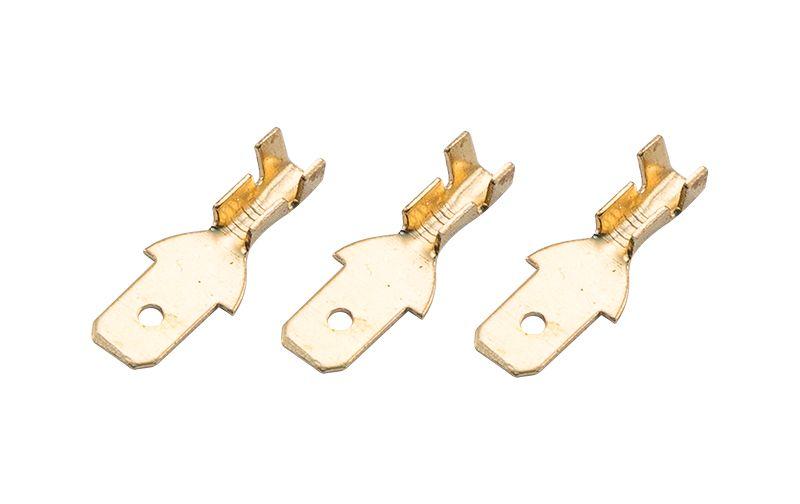 Клемма плоская (КП штекер - 4.8 мм) 0,5-1.5 мм2 (DJ616-4.8*0.5B) REXANT предназначена для создания качественного подключения электрооборудования или соединения проводов между собой, которое при необходимости возможно разъединить без лишних усилий. Такая клемма используется для оконцовывания многожильных медных проводов при монтаже мобильных электрических контактных соединений на подвижном составе (автомобиле-, вагоно-, самолето- и судостроении). Клемма плоская неизолированная (штекер) REXANT изготовлена из латуни. Обжатие производится специальными пресс-клещами (ht-202; ht-230; ht-301) по жиле и по изоляции, что обеспечит максимальную прочность соединения с проводом. Каждая клемма имеет отверстие, служащее фиксатором замкового типа с гнездовым разъемом. Основные характеристики: Температурный диапазон эксплуатации: -55...+135 ? Сечение применяемых проводов в диапазоне: 0,5-1.5 мм2 Общая длина штекера: L = 17 мм Рабочая ширина штекера: W = 4.8 мм Применение плоских клемм дает возможность существенно ускорять электромонтажные работы, при этом появляется возможность неоднократного отсоединения и присоединения проводов. Рекомендовано использовать в зонах вибрации и повышенных температур.