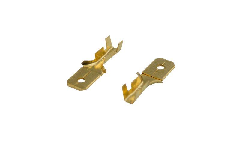 Клемма плоская (КП штекер – 6.3 мм) 0,5-1.5 мм2 (DJ617-6.3В) REXANT предназначена для создания качественного подключения электрооборудования или соединения проводов между собой, которое при необходимости возможно разъединить без лишних усилий. Такая клемма используется для оконцовывания многожильных медных проводов при монтаже мобильных электрических контактных соединений на подвижном составе (автомобиле-, вагоно-, самолето- и судостроении). Клемма плоская неизолированная (штекер) REXANT изготовлена из латуни. Обжатие производится специальными пресс-клещами (к примеру, ht-202 арт.12-3031 и 12-3032; ht-230 арт.12-3101 и 12-3001; ht-301 арт.12-3020) по жиле и по изоляции, что обеспечит максимальную прочность соединения с проводом. Размер контакта определяется шириной клеммы. Каждая клемма имеет отверстие, служащее фиксатором замкового типа с гнездовым разъемом. Основные характеристики: Температурный диапазон эксплуатации: -55...+135 ? Сечение применяемых проводов в диапазоне: 0.5-1.5 мм2 Общая длина штекера: L = 20 мм Рабочая ширина штекера: B = 6.3 мм Применение плоских клемм дает возможность существенно ускорять электромонтажные работы, при этом появляется возможность неоднократного отсоединения и присоединения проводов.