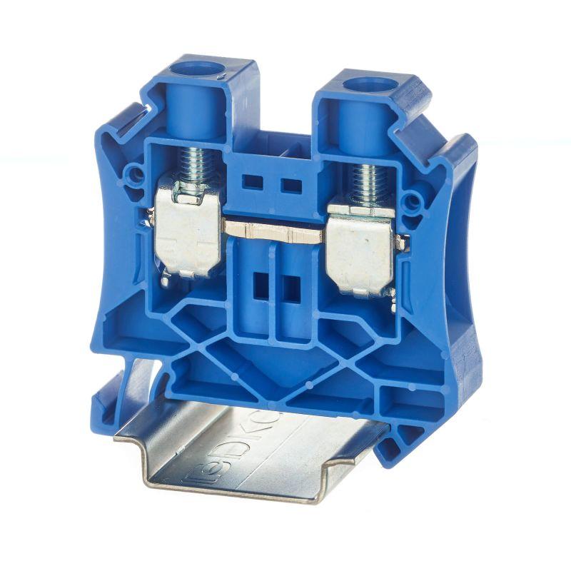 Проходная клемма с винтовым зажимом предназначена для соединения двух проводников. Монтаж на DIN-рейку OMEGA. Температура эксплуатации от -40 до +105°C. Корпус выполнен из ПА 6.6 с классом горючести V0 UL-94. Синий цвет, 2 точки подключения, 16 мм2. 2 канала для вставных перемычек. Габариты (В?Ш?Г) 55?55,3?12 мм.