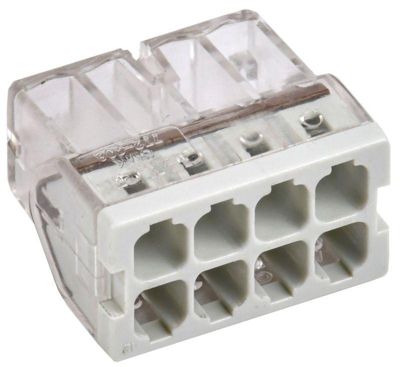 Строительно-монтажная клемма серии 772 в прозрачном корпусе, без контактной пасты, предназначена для однократного подключения одножильных/ многожильных медных проводников.