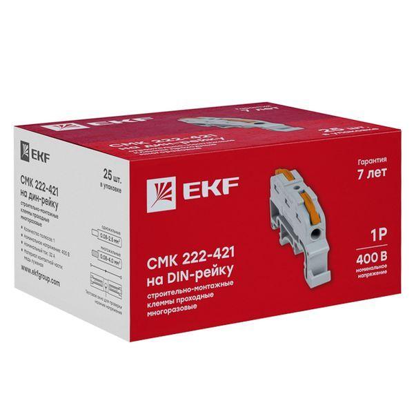 Строительно-монтажные клеммы EKF предназначены для соединения и разветвления медных проводов до 4 мм2. Клеммы отличаются повышенной прочностью и рассчитаны на многократное использование. Контактная часть из луженной меди повышает пропускную способность клеммы. Клеммы СМК обеспечивают простой и быстрый монтаж, имеют уникальный на российском рынке дизайн. Клеммы СМК 222 проходные предназначены для многоразового соединения одножильных и многожильных проводников из меди в электрических цепях переменного тока с частотой 50 Гц напряжением до 400 В. Клеммы можно использовать при температуре от –40 до +40° C.