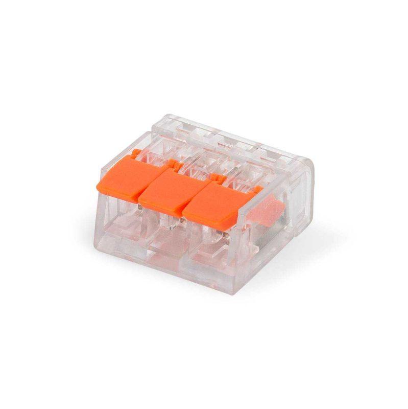 • Универсальные миниатюрные клеммы для подключения любых типов медных проводников: моножильных и многопроволочных • Максимальное напряжение: 450 В • На 40% меньше и компактнее чем клеммы серии 222 • Прозрачный корпус позволяет контролировать правильность положения проводника и длину снятия изоляции • Два тестовых отверстия дают возможность измерения электрических параметров цепи без разбора и нарушения изоляции соединения