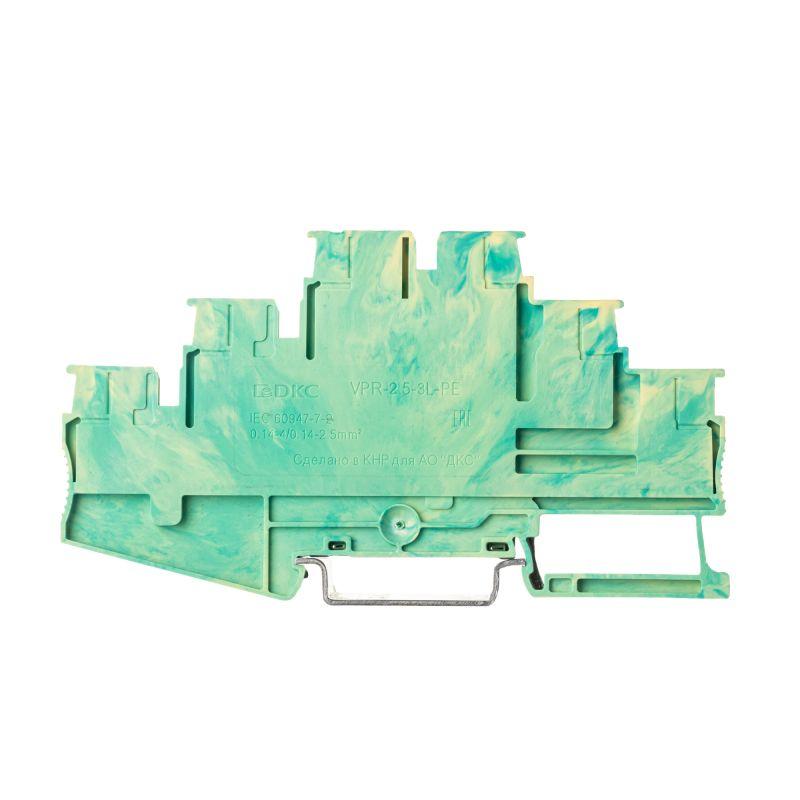 Клемма для заземления трехуровневая с Push-in зажимом, за счет кнопки-толкателя обеспечивается защита от ошибок при монтаже и случайного прикосновения. Клемма имеет электрический контакт с DIN-рейкой. Монтаж осуществляется на DIN-рейку OMEGA. Температура эксплуатации от -40 до +105оС. Корпус выполнен из ПА 6.6 с классом горючести V0 UL-94. Желто-зеленый цвет, 6 точек подключения, 2.5 мм2. Система вставных перемычек. Габариты (В?Ш?Г) 58,1?103?5,2 мм.