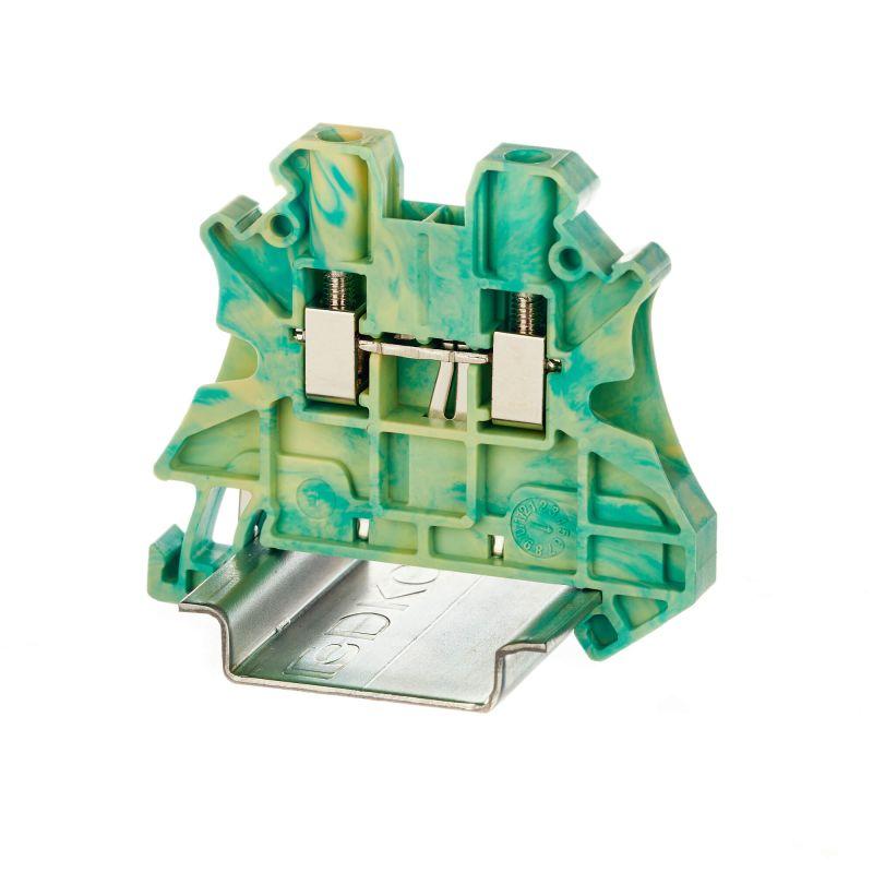 Клемма для заземления с винтовым зажимом предназначена для соединения двух проводников. Монтаж на DIN-рейку OMEGA. Температура эксплуатации от -40 до +105°C. Корпус выполнен из ПА 6.6 с классом горючести V0 UL-94. Имеет электрический контакт с DIN-рейкой. Желто-зеленый цвет, 2 точки подключения, 4 мм2. 1 канал для вставных перемычек. Габариты (В?Ш?Г) 47,5?53?6,2 мм.