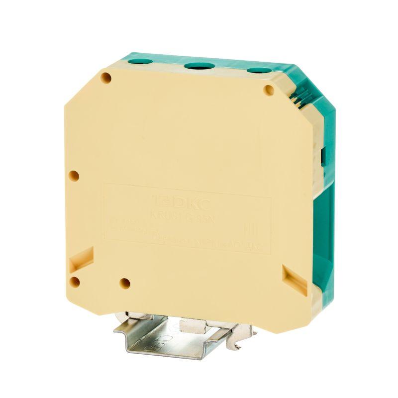Клемма для заземления с винтовым зажимом предназначена для соединения двух проводников. Монтаж на DIN-рейку OMEGA. Температура эксплуатации от -40 до +105°C. Корпус выполнен из ПА 6.6 с классом горючести V0 UL-94. Имеет электрический контакт с DIN-рейкой. Желто-зеленый цвет, 2 точки подключения, 95 мм2. 1 канал винтовых перемычек. Габариты (В?Ш?Г) 99?83?25 мм.