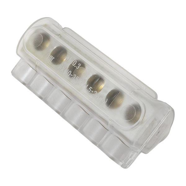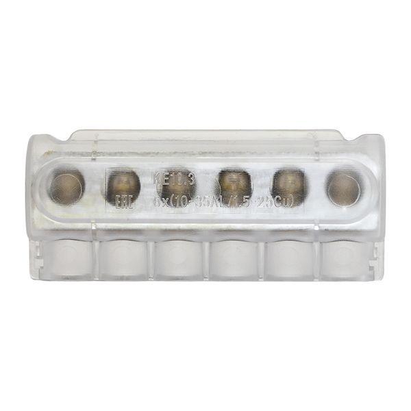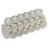 Клеммник уличного освещения типа ke-10.3 предназначен для соединения и разветвления 6-х жильных кабелей внутри стоек или щитов опор и мачт уличного освещения. Подходит для медных и алюминиевых проводов. При подключении проводов необходимо зачистить концы от изоляции. Контакт с зачищенным проводом обеспечивается прижимными винтами с внутренним шестигранником. На проводящие части нанесена контактная смазка. Корпус клеммника неразборный.