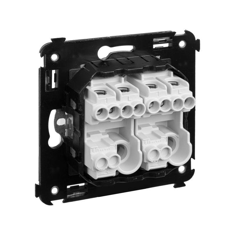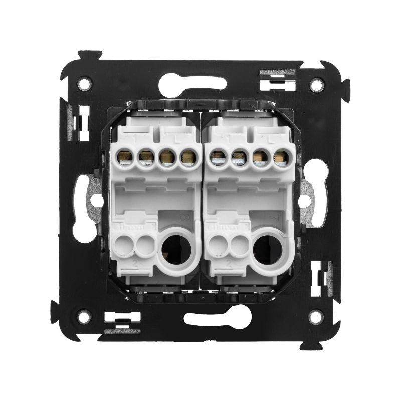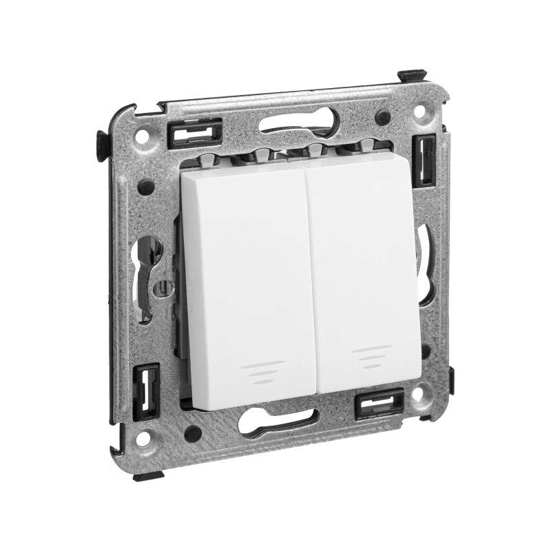 Кнопка двухклавишная. Назначение: для монтажа в подрозеточные коробки глубиной не менее 45 мм (код 59301). Используется в качестве кратковременного включения источника питания энергией. Характеристики: 2 модуля, диаметр отверстий для ввода кабелей – 3 мм (по 2 отверстия на одну клемму); винтовые зажимы; шаблон для зачистки кабеля – 11 мм; номинальный ток – 10 A; номинальное напряжение – 230 В; фиксация в подрозеточные коробки при помощи каркаса с лапками (код 4400802) и саморезов. Цвет: "Белое облако". Производитель оставляет за собой право вносить во внешний вид изделия изменения, которые не влияют на его функционал, безопасность и надежность.