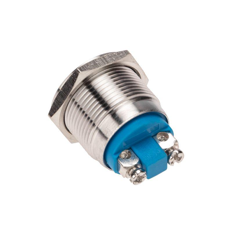 Кнопка антивандальная O19 Б/Фикс (2с винт) OFF-(ON) сфера предназначена для коммутации электрических цепей переменного тока напряжением до 250В путем включения-выключения питающего провода. Такие кнопки применяются в местах, где существует большой риск их повреждения (на различных производственных линиях, в лифтовых кабинах, около входной двери и т.д.). Главными отличительными особенностями антивандальной кнопки являются металлическое исполнение и неуязвимость контактной группы, что обеспечит ей долговечное функционирование. Изделие состоит из двух основных частей - лицевой части (головки) и контактной, и имеет пружинный возвратный механизм. Монтаж осуществляется без применения винтов на плоских панелях толщиной от 0.5мм до 10мм. Подключение проводов осуществляется с помощью винтовых зажимов. Основные характеристики: Номинальное напряжение и ток: 3A/36V(DC) 3A/250V(AC); Тип переключения: OFF-(ON); Количество контактных групп: 1; Количество контактов в контактной группе: 2; Фиксация положений: отсутствует; Индикатор коммутационных положений: отсутствует; Установочный диаметр: 19мм; Рабочая температура: от -25? до +85?; Степень защиты (IP): IP65; Ресурс: 10 000 циклов. Преимуществами использования данного изделия является надежность, быстрота и удобство монтажа.