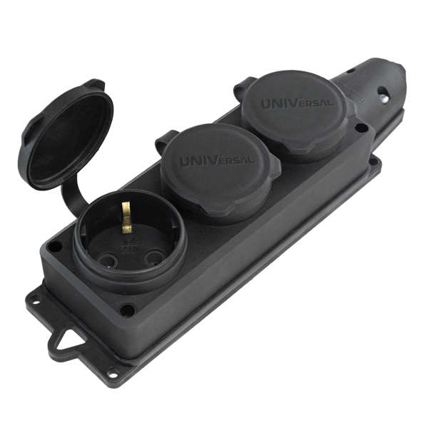 Колодка удлинителя 3-м Компакт 1ф с заглушками каучук UNIVersal 1323