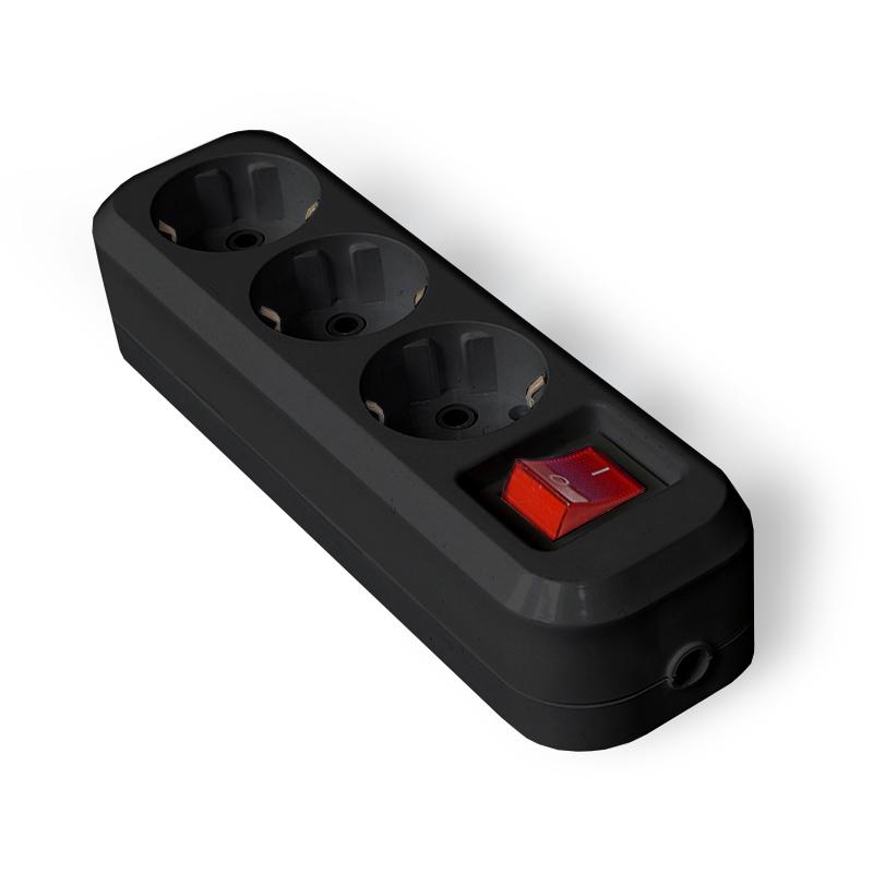 Колодка удлинителя 3-м с заземл. с выкл. АБС-пластик черн. UNIVersal 1310
