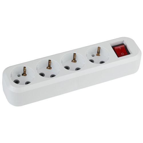 Колодка ЭРА KX-4es на 4 розетки с заземлением, с выключателем. Максимальная мощность - 16 А/3500 Вт. Для кабеля до 3х1,5мм2