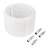 Комплект REXANT применяется для механического соединения ресиверов, ТВ-антенн, телевизоров и другого телевизионного оборудования с коаксиальным кабелем. Комплектация набора существенно облегчает и ускоряет процесс подключения техники. Все компоненты выполнены из никелированной меди, защищенного от окисления и появления ржавчины при эксплуатации в неблагоприятных условиях. Применение набора позволяет добиться приема ТВ-передач в высоком качестве без шумов и искажений. В состав комплекта входят: кабель RG-6 CCS 75Ом длиной 10 метров; F-разъем RG-6 – 4 шт; переходник (гнездо F - штекер TV) – 2 шт; переходник (гнездо F - гнездо TV) – 1 шт; переходник (гнездо F - гнездо F Бочка) – 1 шт.