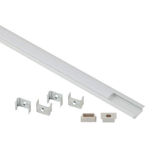Комплект врезного алюминиевого профиля предназначен для установки светодиодных лент с шириной подложки до 10 мм. За счёт отведения тепла увеличивает срок службы светодиодной ленты. Анодированное покрытие обеспечивает устоичивость к воздействиям окружающей среды и легко окрашивается. Эстетично смотрится в интерьере, обеспечивает механическую защиту. В комплекте врезной алюминиевый профиль САВ251 22х6 мм 2 м, белый матовый экран из поликарбоната 2 м, 4 крепления и 2 заглушки.