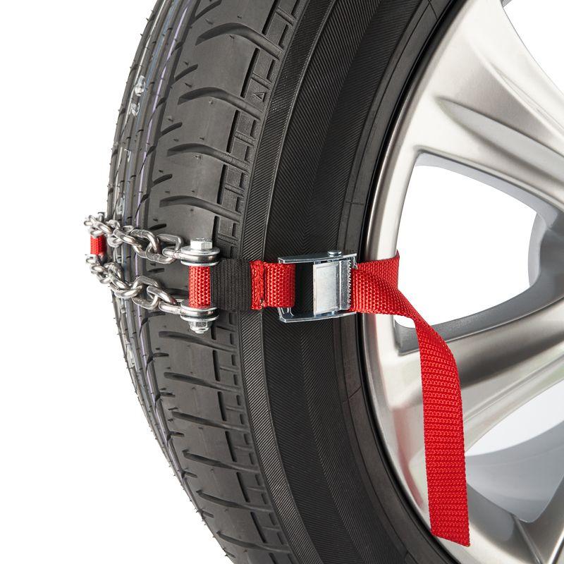 Цепи (браслеты) противоскольжения на колеса автомобиля - незаменимый аксессуар для всех водителей, неравнодушных к активному отдыху (охота, рыбалка, туризм). Данные цепи (браслеты) станут отличными помощниками во время поездок в деревню или на дачу. Прочные и долговечные стальные цепи (браслеты) противоскольжения обеспечивают повышение проходимости автомобиля при движении по труднопроходимым участкам пути, эффективны в снегу, грязи, глине, льду, в горах и на бездорожье. Компактные размеры изделия не занимают много места и позволяют возить его с собой в багажном отсеке на постоянной основе. Подходят для машин на любом приводе: переднем, заднем или полном, могут быть установлены на все виды дисков: штампованные, литые или кованные. Большим преимуществом является возможность применения только по мере необходимости. Устанавливать цепи (браслеты) можно даже тогда, когда автомобиль уже застрял. Монтаж занимает пару минут и не требует специальных навыков. Браслеты изготовлены из надежных и качественных материалов. Автоматизированная сварка швов повышает прочность. Изделие не рекомендуется применять на твердом абразивном покрытии: асфальт, бетон, каменистый грунт. Отличный подарок для любого автолюбителя!