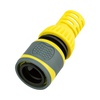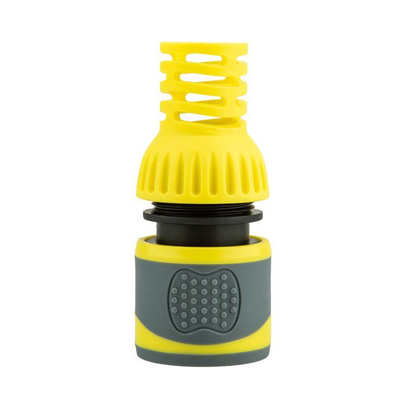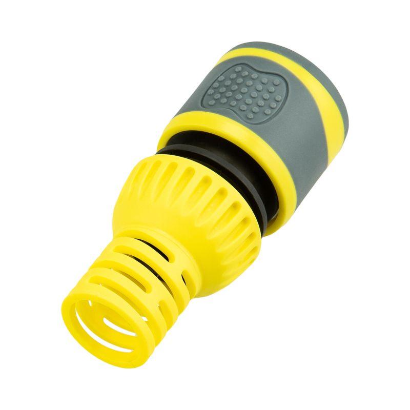 Быстросъемный коннектор предназначен для соединения шлангов с адаптерами на распылителях, разветвителях, дождевателях и т.д. Используется при организации систем полива и систем водоснабжения. Специальная защита от перегибов предотвращает заломы шланга в местах соединения, что существенно продлевает его срок его службы и обеспечивает стабильный поток воды. Коннектор выполнен из высококачественного АБС-пластика, стойкого к ультрафиолетовым лучам и низким температурам. Благодаря термопластичной резине не скользит в руках. Продуманная конструкция обеспечивает герметичность и надежность соединения, что является залогом стабильной и эффективной работы системы полива. Изделие просто и быстро устанавливается вручную без использования специальных инструментов и крепежных элементов. При организации системы полива важно, чтобы диаметры всех элементов совпадали!