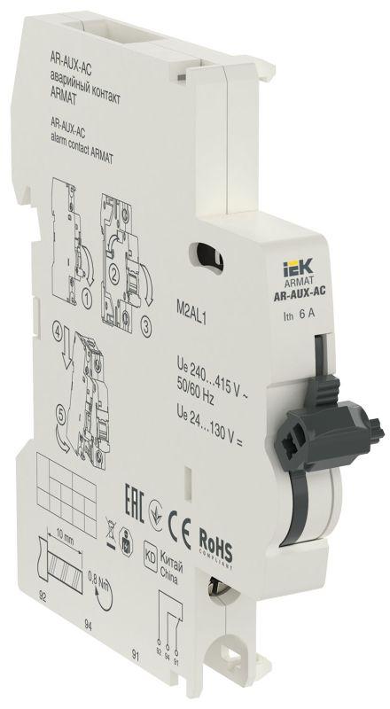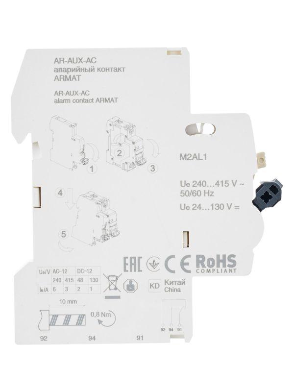 Аварийный контакт ARMAT AUX-AC служит для получения информации о состоянии автоматических выключателей ARMAT cерий M06N и M10N в системах автоматизации технологических процессов или защиты конкретных объектов. ARMAT AUX-AC выполняет функцию сигнализации положения механизма взвода выключателей ARMAT cерий M06N или M10N. После установки модуля в зацепление с механизмом выключателей ARMAT cерий M06N или M10N при первом взведении рукоятки управления происходит переключение контактов, остающихся в таком положении и при ручном отключении ВА. Переключение контактов произойдет только при срабатывании выключателя от сверхтоков (перегрузки или короткого замыкания).